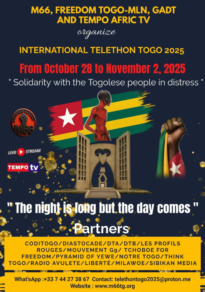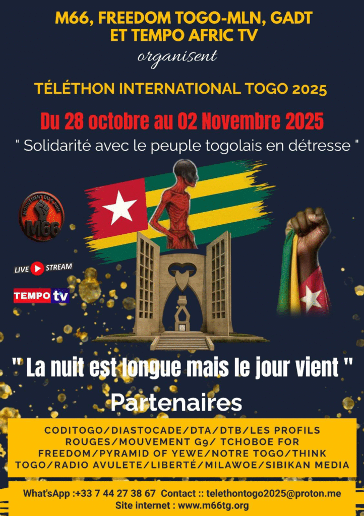Nous invitons toutes les personnes de bonne volonté à rejoindre notre mouvement pour un Togo libre et souverain. Chaque geste de solidarité compte dans cette lutte pour la justice et la démocratie.
